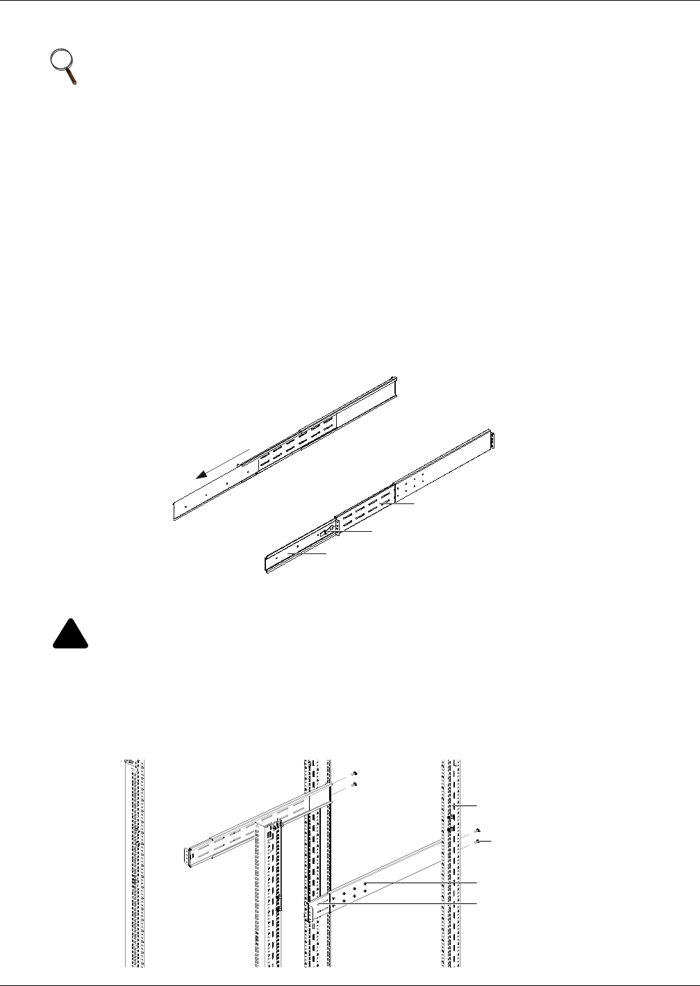 4. Attach the rear member of each slide rail assembly to the rack’s rails with two factory-supplied