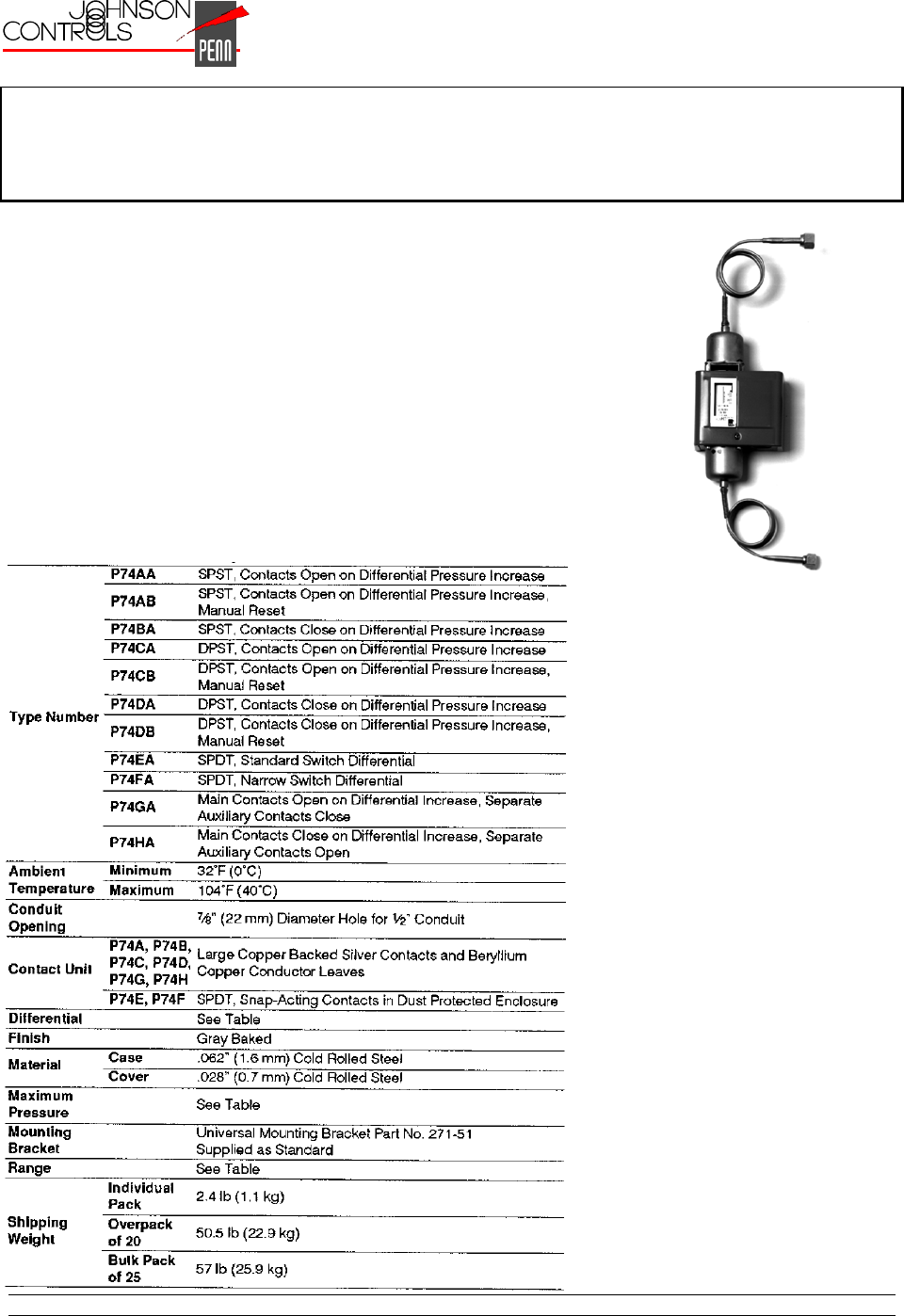 Product Bulletin P74