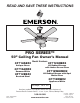 READ AND SAVE THESE INSTRUCTIONS PRO SERIES™ 50” Ceiling Fan Owner's Manual CF712AB02 Antique Brass Model Numbers CF712ORB02 Oil Rubbed Bronze with Amber Scavo Glass CF712AW02 CF712WORB02 Summer White CF712BS02 Oil Rubbed Bronze with Opal Matte Glass Brushed Steel CF712WW02 Appliance White Net Weight: 19.0 Lbs. Questions, problems, missing parts: Before returning to the store call Emerson Electric Customer Service - 8 a.m. - 6 p.m., Eastern, Monday-Friday Part No.