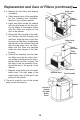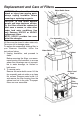 Replacement and Care of Filters (continued) 3. a. Remove the two filters and dispose of properly. Water Level Float b. Clean internal parts of the humidifier per the “Cleaning Your Humidifier” section of your owner’s manual. Float Retainer c. Install new filters inside the cabinet with the glue beads on the filter facing the center of the cabinet. Make sure the filters are resting on the floor of the cabinet. Filters d. Return the filter housing to the cabinet.