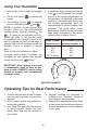 Using Your Humidifier 1. Be sure unit is full of water and plugged in. 2. Set air flow control speed. 4. If humidifier stops running and the Fill Light is not illuminated, the humidity level is at the normal requirements for that setting or it is adjusting to the home conditions. The table below shows relative humidity percentages which are recommended at various outdoor temperatures.