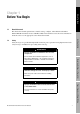 Getting Started continued 2.1.4 Visibility of tags 2.2 Transmitters approved for ATEX Zone 1 Before You Begin For personal and system safety, all tags attached to the transmitter housing must remain visible. Clean or replace them as necessary. WARNING Explosion hazard The circuit board compartment is rated EEx d (flameproof), and should remain closed at all times after the flowmeter has been installed.