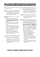 IMPORTANT SAFETY INSTRUCTIONS When using electrical appliances, basic safety precautions should be followed, including the following: WARNING - To reduce the risk of burns. Electric shock, fire, injury to persons, or exposure to excessive microwave energy: 1 Read all instructions before using this appliance. 2 Read 3 and follow the 6 specific "PRECAUTIONS TO AV O I D POSSIBLE 7 EXPOSURE TO EXCESSIVE 8 M I C R O W AV E ENERGY" found on page 1. 9 This appliance must be grounded.