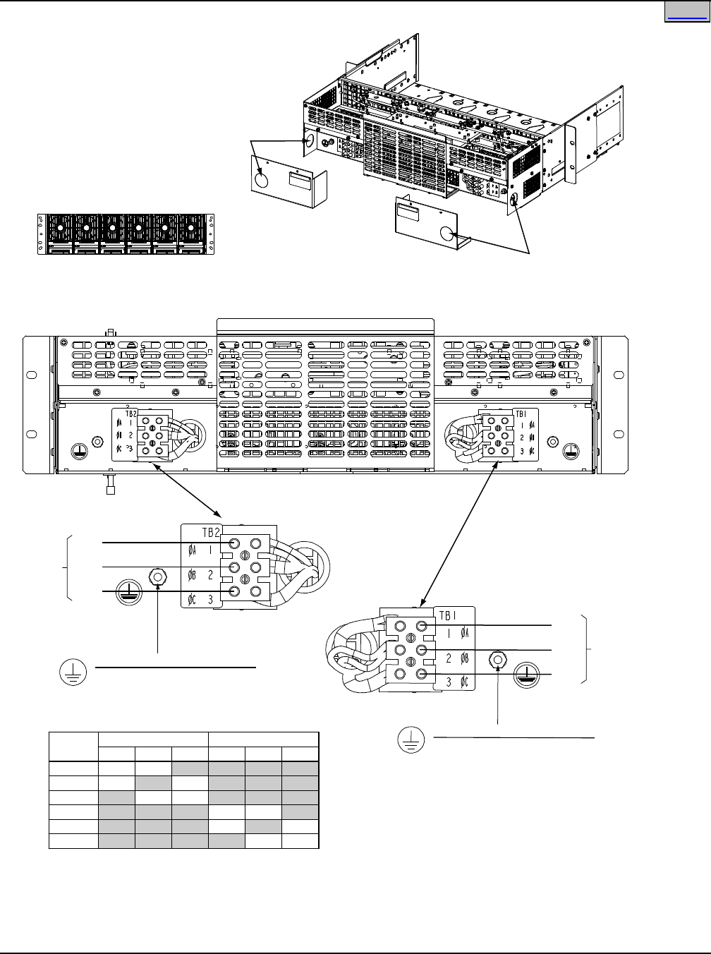 - 588705000 List 32:Rectifier Module Mounting Shelf, 208/240VAC Three-Phase Input, AC Input Terminal Blocks