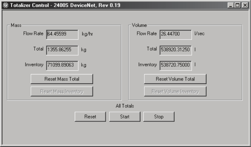 Output Levels window – displays current data for the transmitter’s mA, frequency, and