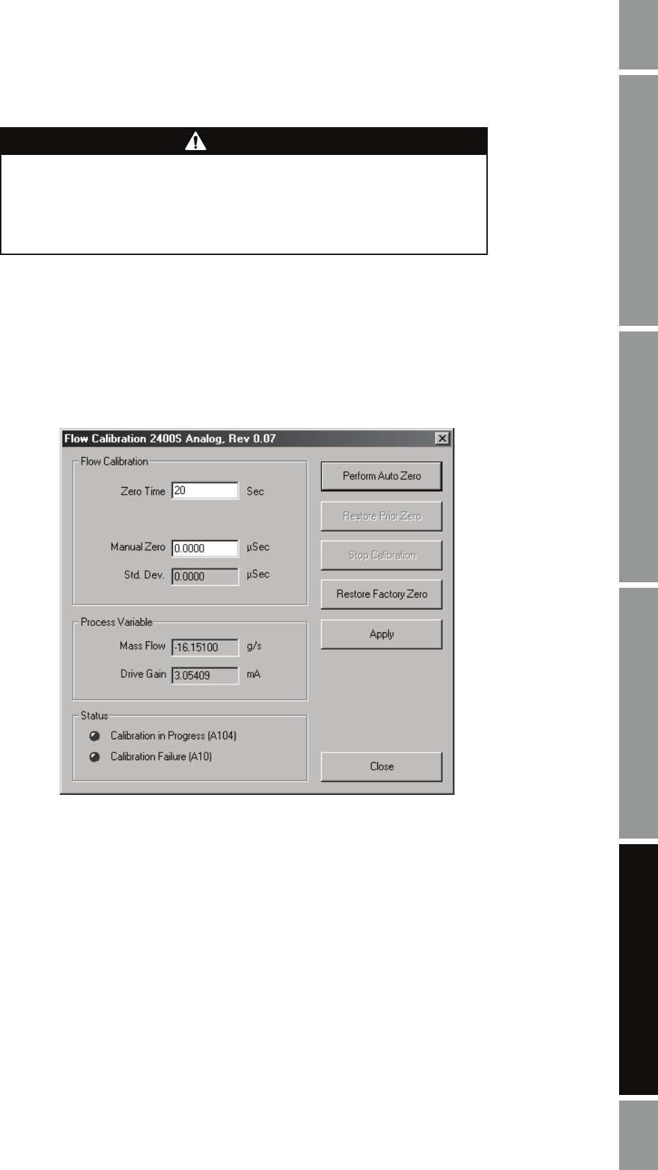 If fluid is flowing through the sensor, the sensor zero calibration may be