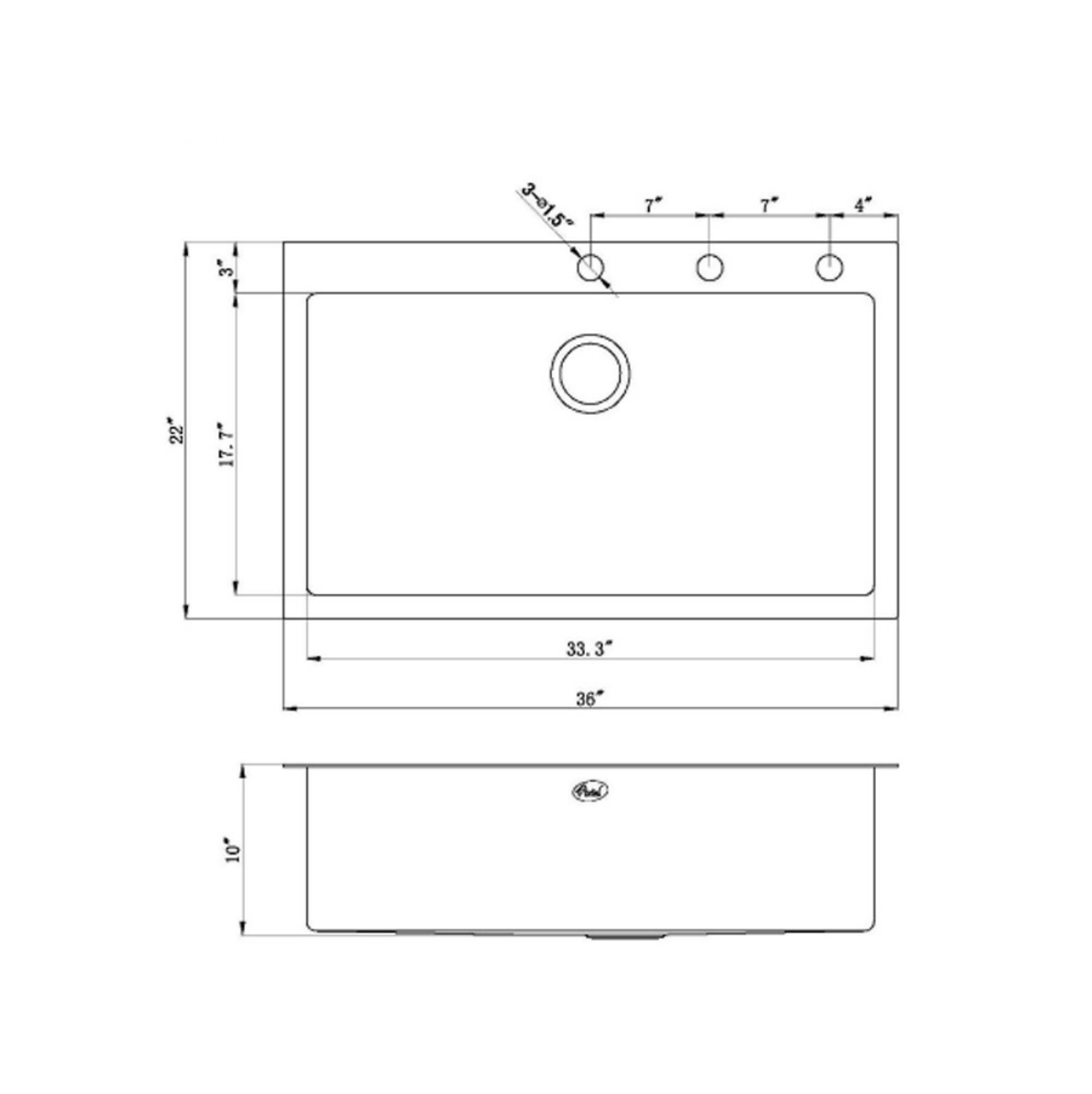 Ariel 36-in x 22-in Stainless Steel Single Bowl Drop-In 3-Hole Commercial/Residential Kitchen Sink