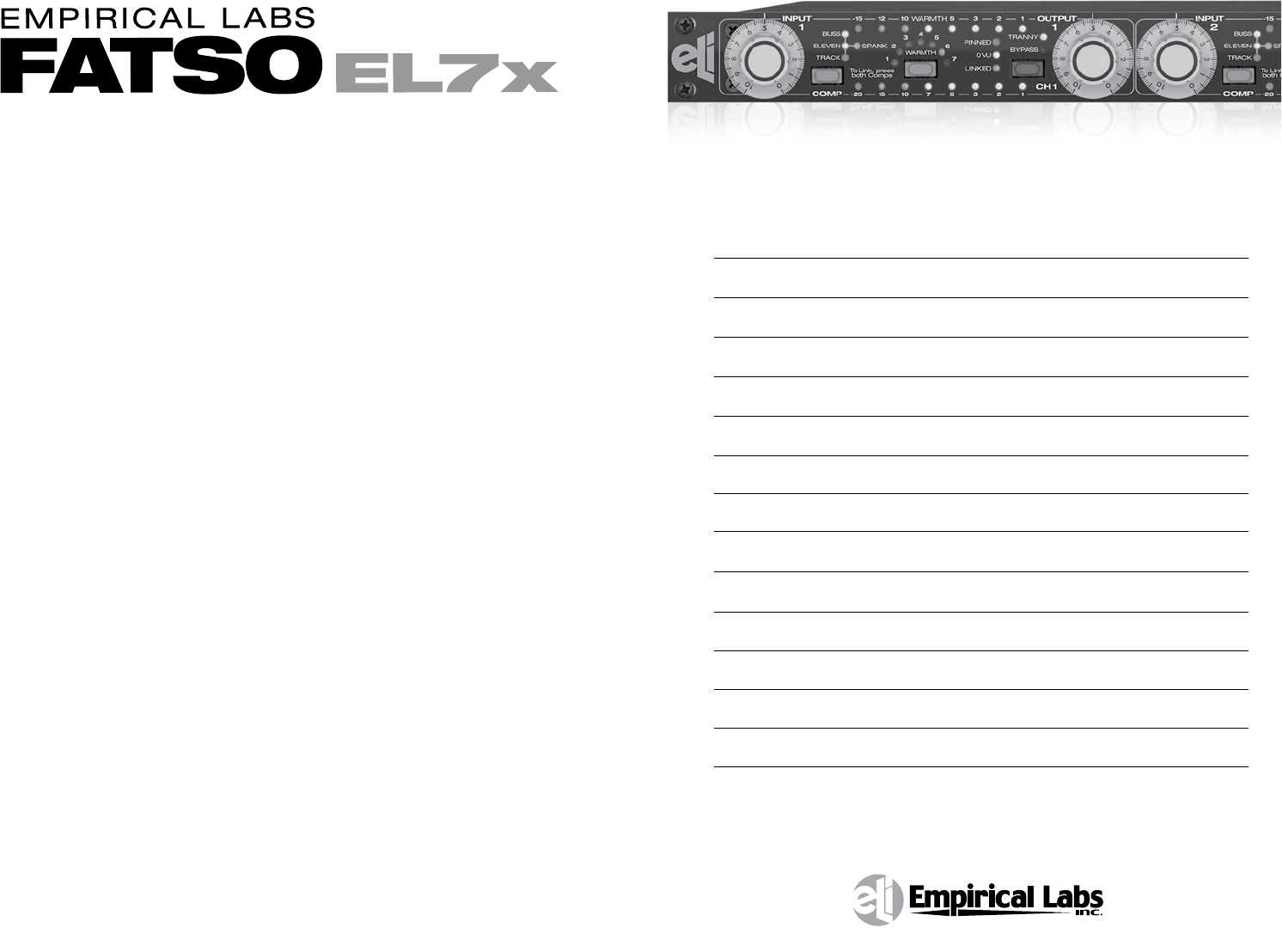 warranty with the exception of changing the fuses or line voltage selection. Empirical Labs Inc. takes no