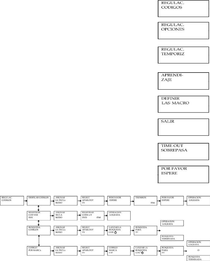 Cuando aparezca en la pantalla "REGULAC CÓDIGOS", acéptelo a través de la tecla OK. El ajuste de