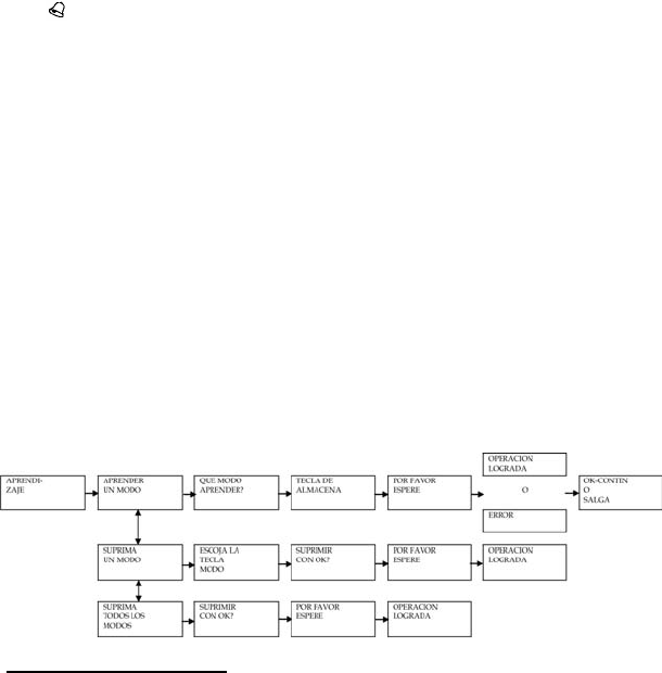 aprendizaje). Tan sólo se puede memorizar un tipo de control remoto en cada modo.