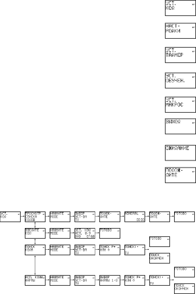 Когда пульт ДУ выполняет обработку операций по настройке, на экране дисплея