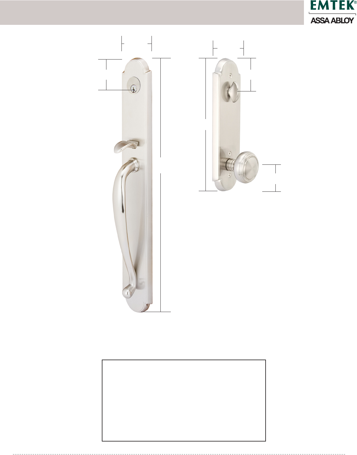 Emtek Products, Inc. 15250 Stafford St. City of Industry, CA 91744 Tel: 800.356.2741 Fax: 800.577.5771 www.emtek.com