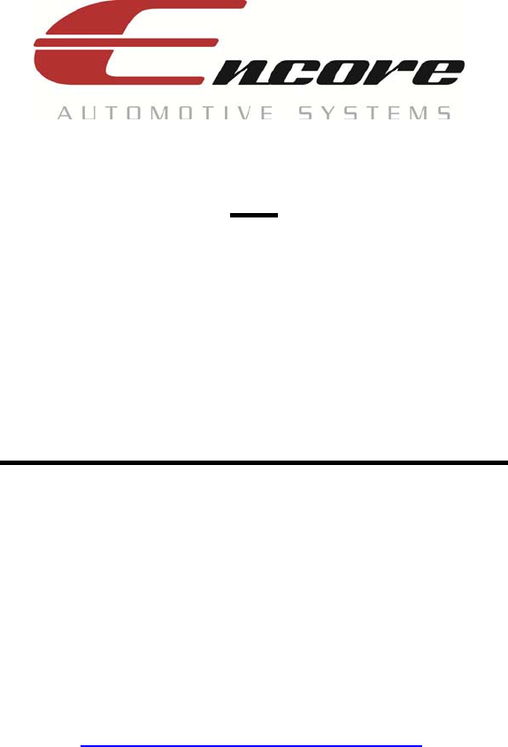 E3 PROFESSIONAL REMOTE ALARM SYSTEM INSTALLATION MANUAL This unit is designed for professional installation only and must be installed by an Encore authorized dealer. Please register this product at www.encoreautomotivesystems.com. E3 IN REV.