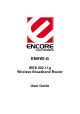 ABOUT THIS GUIDE Congratulations on your purchase of this IEEE 802.11g Wireless Broadband Router. This integrated access device combines Internet gateway functions with wireless LAN and Fast Ethernet switch. It provides a complete solution for Internet surfing and office resources sharing, and it is easy to configure and operate for every users. Purpose This manual discusses how to install the IEEE 802.11g Wireless Broadband Router. Overview of this User’s Guide Introduction.