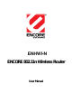 Unpacking Information Thank you for purchasing ENCORE 802.11n Wireless Router. Before you start, please check all the contents of this package. The product package should include the following: 1. 2. 3. 4. One Wireless Router One power adapter One User Manual (CD) One detachable antenna Introduction To Wireless Router General Description The ENCORE 802.11n Wireless Router is compatible with IEEE802.11n standard, which supports data rate up to 300 Mbps in 2.