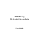ABOUT THIS GUIDE Congratulations on your purchase of this 108M Super-G Wireless LAN Access Point. This manual helps to features the innovating wireless technology that can help you build a wireless network easily! This manual contains detailed instructions in operation of this product. Please keep this manual for future reference. With a WLAN Access Point, a mobile computer can share data with another mobile computer in a wireless way.