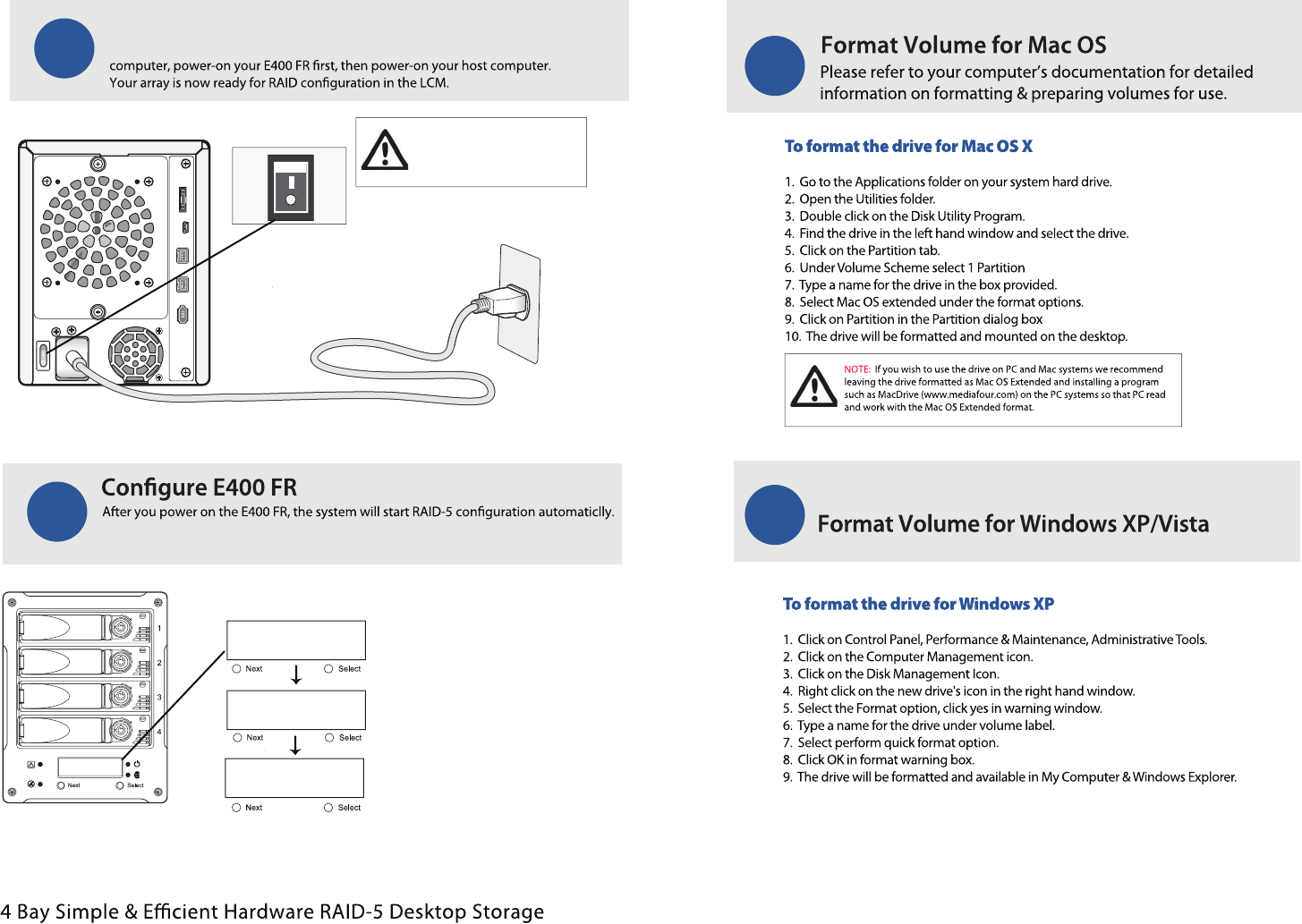After connecting Data (FW400/800, USB, eSATA) cable to your system and host