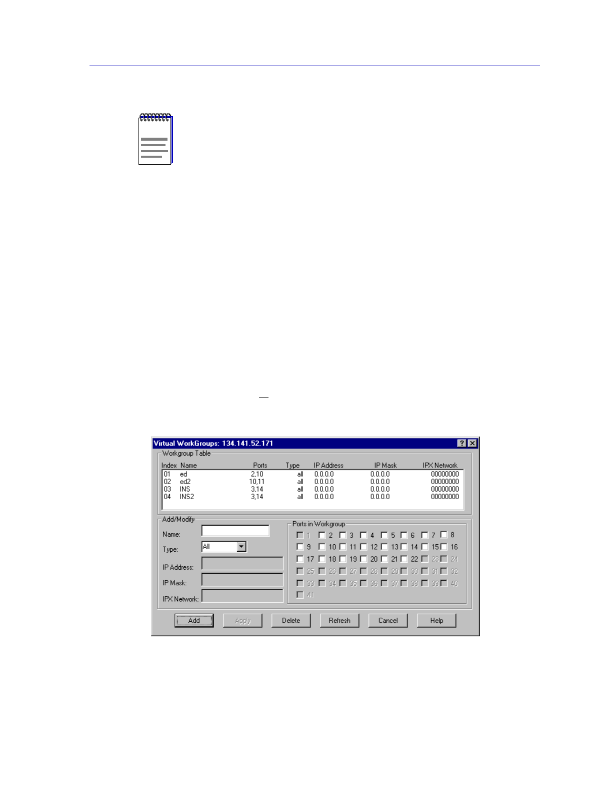 2. Drag down to Workgroups.... The Virtual Workgroups window, Figure 5-1 will