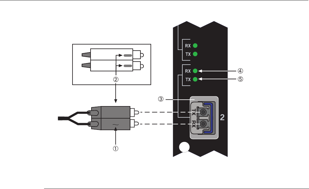 2 Latch keys (bottom of SC connector) 5 Transmit LED (TX)