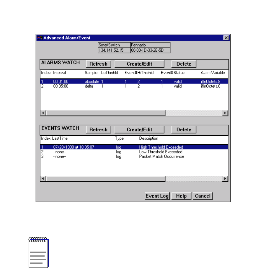 Figure 3-3. The RMON Advanced Alarm/Event List Window