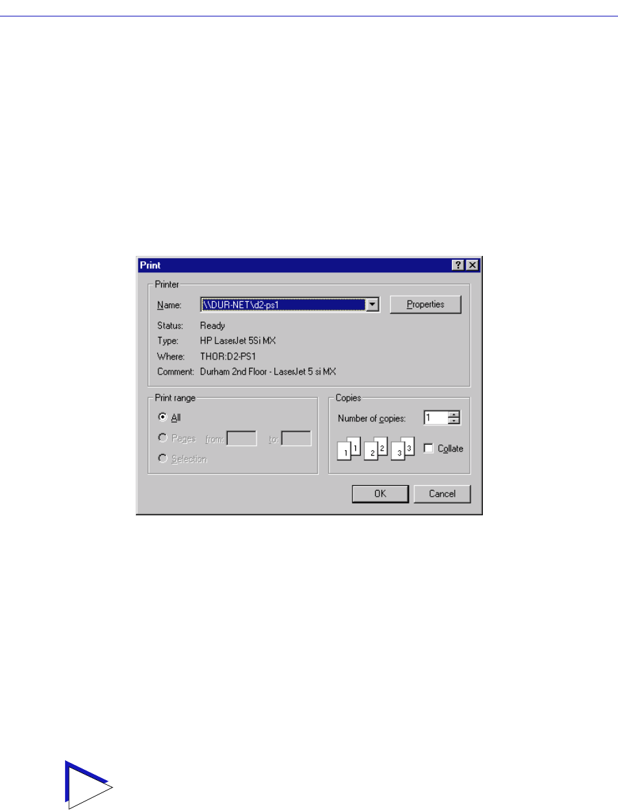 Windows print window like the sample shown in Figure 4-2 opens.