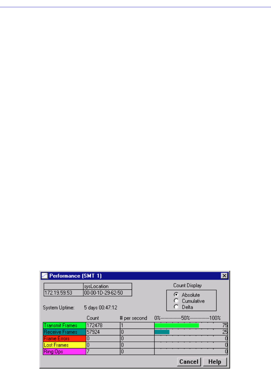 The FDDI Performance window, Figure 6-5, provides graphical and numeric