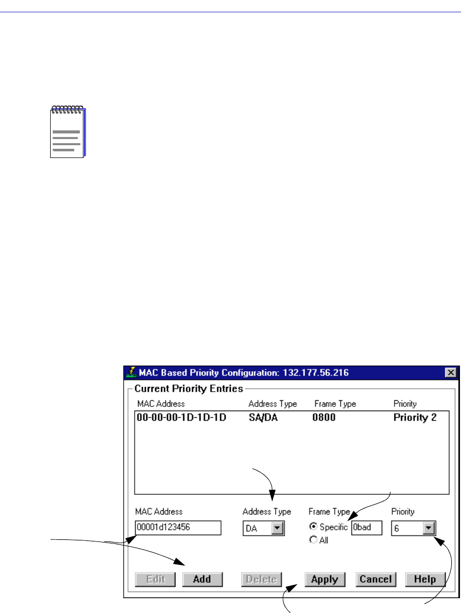 You can use the MAC Based Priority Configuration window, Figure 2-19, to