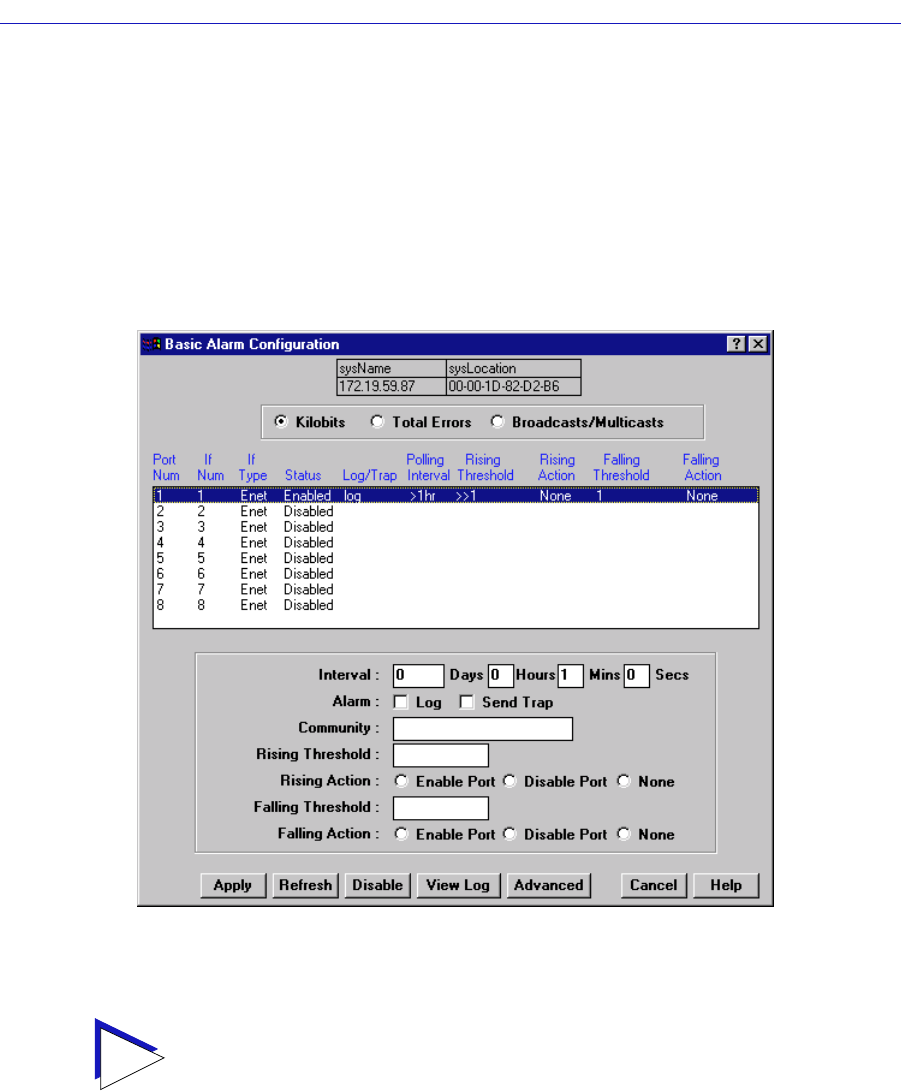 Figure 3-1. The RMON Basic Alarm Configuration Window