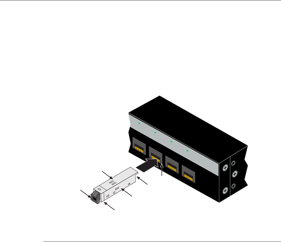 3. PushtheMini‐GBICintotheportslotuntiltheMini‐GBIC“clicks”andlocksinto
