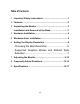 Table of Contents 1 Important Safety Instructions..........................................1 2 Features.............................................................................2 3 Unpacking the Monitor.....................................................3 Installation and Removal of the Base…………………….3 4 Hardware Installation........................................................4 5 Windows driver installation .............................................5 6 Setting the Display Resolution...............