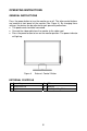 OPERATING INSTRUCTIONS GENERAL INSTRUCTIONS Press the power button to turn the monitor on or off. The other control buttons are located at front panel of the monitor (See Figure 4). By changing these settings, the picture can be adjusted to your personal preferences. • The power cord should be connected. • Connect the video cable from the monitor to the video card. • Press the power button to turn on the monitor position. The power indicator will light up.
