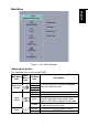 Main Menu English Deutsch Français Figure 4 The OSD Message Adjusting the picture The descriptions for function control LEDS Main Main Menu Menu Item Icon Brightness/ Contrast Image Adjust Sub Menu Item Brightness Contrast Black level Auto level H-Position V-Position Clock Phase Audio Volume Mute Description Controls the picture’s contrast, brightness, black level and auto level. Controls the picture’s horizontal position. Controls the picture’s vertical position. Sets up the internal clock.
