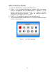 OPERATING INSTRUCTIONS GENERAL INSTRUCTIONS Press the power button to turn the monitor on or off. The other control buttons are located on the front panel of the monitor (See Figure 4). By changing these settings, the picture can be adjusted to your personal preferences. The power cord should be connected. Connect the video cable from the monitor to the video card. Press the power button to turn on the monitor position. The power indicator will light up.