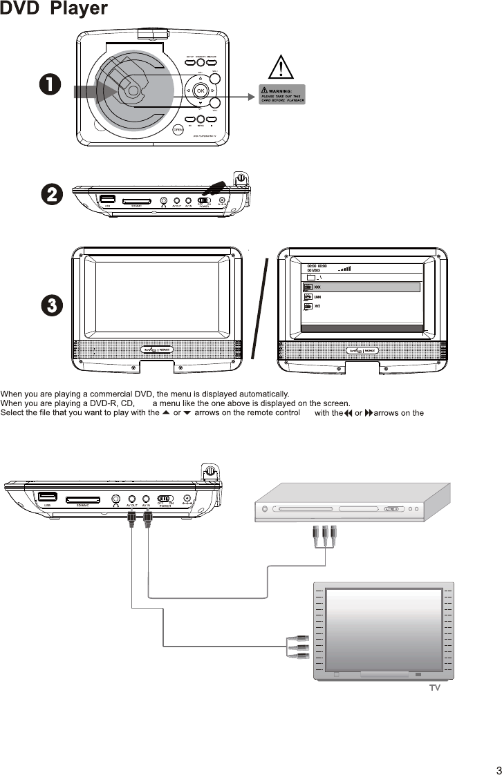 Switch the portable TV player to AV mode.