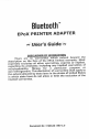 USER'S GUIDE Thank you for purchasing an E Pox Bluetooth Printer Adapter! Your printer will soon he Bluetooth enabled, allowing you to print remotely from desktop PCs, notebook computers, PADS, pocket PCs and many other Bluetooth devices without any cables. A, ITEM E Pox Bluetooth Printer Adapter 1 User Guide 1 AC/DC Power Adapter Bluetooth Profile Supported: Serial Port war Printer Speed: Up to 115,200bps ss Chip set: CSR Blue Core 02 er Buffer Memory: 32K Bytes DRAM sce Power Consumption: 0.