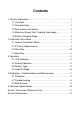 Contents 1 General Information ............................................................................. 1 1.1 Overview ..................................................................................... 1 1.2 Characteristics ............................................................................ 2 1.3 Accessories Instructions ........................................................... 3 1.4 Maximum Power Point Tracking Technology ......................... 3 1.5 Battery Charging Stage ...........