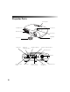 4. Use a small screwdriver to loosen the two silver screws holding the lamp in place. (You can’t remove these screws.) 5. Grasp the lamp as shown and pull it straight out. 6. Gently insert the new lamp and tighten its screws. Caution: Don’t touch the glass portion of the lamp assembly. Touching the glass could result in premature lamp failure. 7. To replace the lamp cover, insert the tabs and then snap the cover into place. (The projector won’t work if the lamp cover is loose.