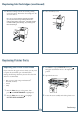 Replacing Ink Cartridges (continued) 5 Hold the cartridge with the arrow mark pointing toward the printer. Then insert the cartridge into the slot. Don’t force it. 6 Close the ink bay cover. 3 Press Menu to display EXECUTE, then press . The paper cutter holder moves to the replacement position. 4 Open the front cover. 5 Locate the cutter assembly with a blue plastic cover. Note: If you can’t insert the cartridge smoothly, you may have the wrong cartridge. Check the package and product code.