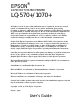 EPSON ® 24-PIN DOT MATRIX PRINTER LQ-570+/1070+ All rights reserved. No part of this publication may be reproduced, stored in a retrieval system, or transmitted in any form or by any means, mechanical, photocopying, recording, or otherwise, without the prior written permission of Seiko Epson Corporation. No patent liability is assumed with respect to the use of the information contained herein.