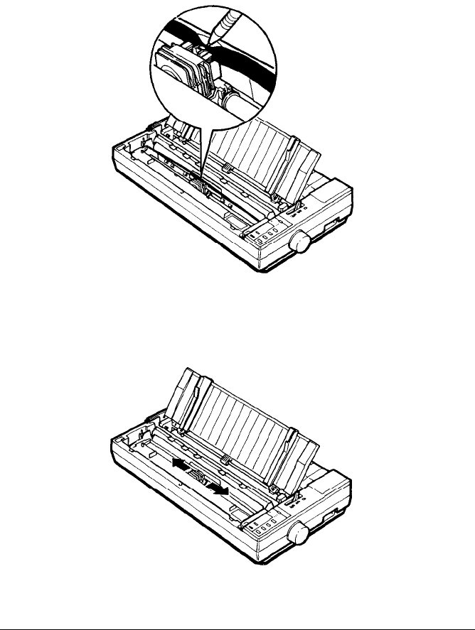 between the print head and ribbon guide while you turn the