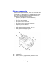 Printer components Apart from the Operator panels, which are described in the next chapter, the B4400, B4500, and B4600 printers look similar from the outside. The important components are identified in the representations below. 1. Operator panel (B4500 and B4600 shown) 2. Top paper exit bin (150 sheets, face down) 3. Top cover release button 4. Top paper exit bin extension 5. Top paper exit bin extension paper guide 6. Paper tray content indicator 7. ON/OFF switch 8.