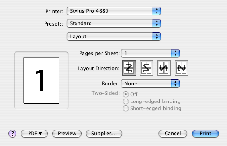 Select the Pages per Sheet, Layout Direction, and Border settings that you