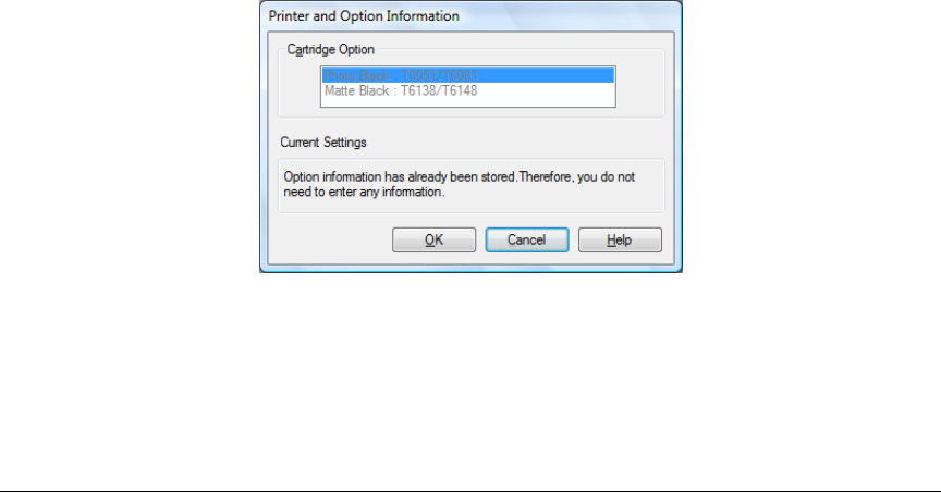 Click the Main tab and make sure that the correct ink cartridge is displayed. If