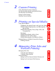 Contents 2 Custom Printing Using Predefined Advanced Settings Customizing Print Quality and Special Effects Customizing Color Settings Saving Custom Settings Deleting Custom Settings 3 Printing on Special Media Using Special Media Letterhead, Pre-printed Forms, and Legal-size Paper EPSON 360 dpi, High Quality, and Photo Quality Ink Jet Paper EPSON Photo Quality Glossy Paper, Film, and Transparencies Envelopes EPSON Photo Quality Ink Jet Cards EPSON Iron-On Transfer Paper EPSON Photo Quality Self Adhesiv