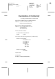 Proof Sign-off: M.Otsuka, CRE Tsukada_______ N. Nomoto _______ _______ R4C477 short.bk Rev_C A5 size 12/21/99 FRONT.FM Pass 3 R Declaration of Conformity According to ISO/IEC Guide 22 and EN 45014 Manufacturer:SEIKO EPSON CORPORATION Address: 3-5, Owa 3-chome, Suwa-shi, Nagano-ken 392-8502 Japan Representative:EPSON EUROPE B.V. Address: Prof. J. H.