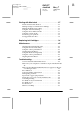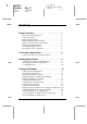 L R4C477 short.bk Rev_C A5 size 12/21/99 SHORT.TOC Pass 2 Proof Sign-off: M.Otsuka, CRE Tsukada_______ N. Nomoto _______ _______ Contents Safety Instructions . . . . . . . . . . . . . . . . . . . . . . . . . . . 1 Important Safety Instructions . . . . . . . . . . . . . . . . . . . . . . . . A Few Precautions . . . . . . . . . . . . . . . . . . . . . . . . . . . . . . . . . When using the printer . . . . . . . . . . . . . . . . . . . . . . . . . . . . . When handling the ink cartridges . . . . . . . .