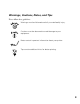 Warnings, Cautions, Notes, and Tips Please follow these guidelines: Warnings must be followed carefully to avoid bodily injury. Cautions must be observed to avoid damage to your equipment. Notes contain important information about your printer. Tips contain additional hints for better printing.
