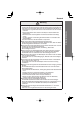 English v Do not use the AC adapter that is not supplied with the product and do not use the AC adapter with other than the specified voltage. Otherwise, damage, overheating, fire or electric shock may occur. v Do not pull the AC adapter cord or put a heavy object on it. Do not modify the power cable, either. Doing so may cause fire or electric shock. v Do not touch the product, AC adapter, plug, or cables with wet hands. Doing so may cause damage, fire, or electric shock.