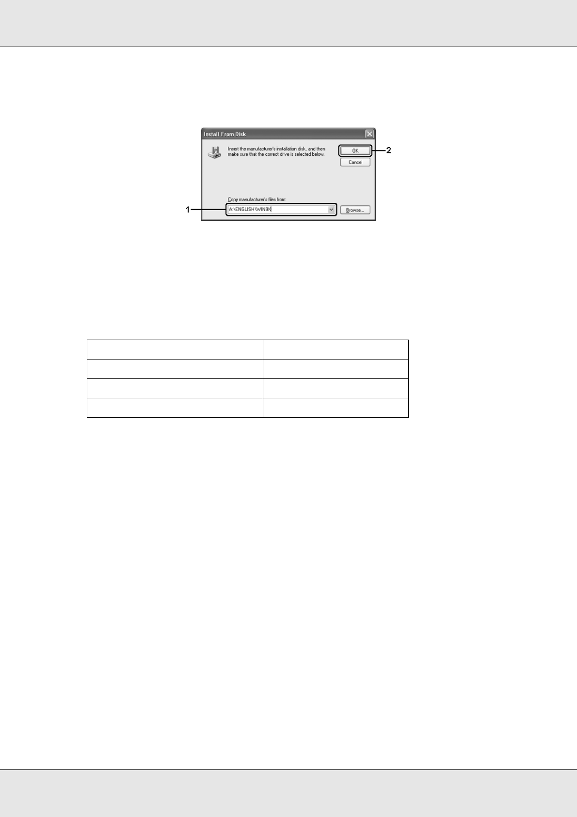 2. Insert the CD-ROM, type the appropriate drive and folder names in which the printer