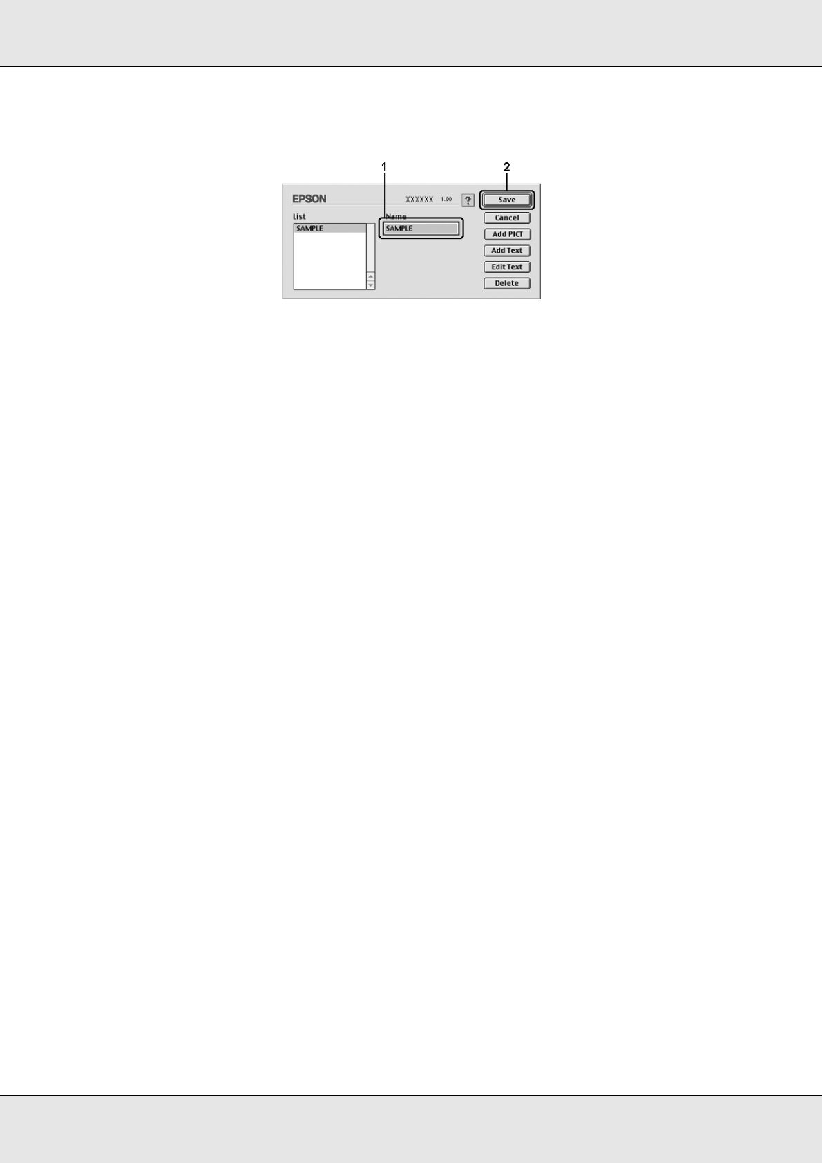 ❏ To remove the saved text watermark, select it from the List box, then click Delete. After